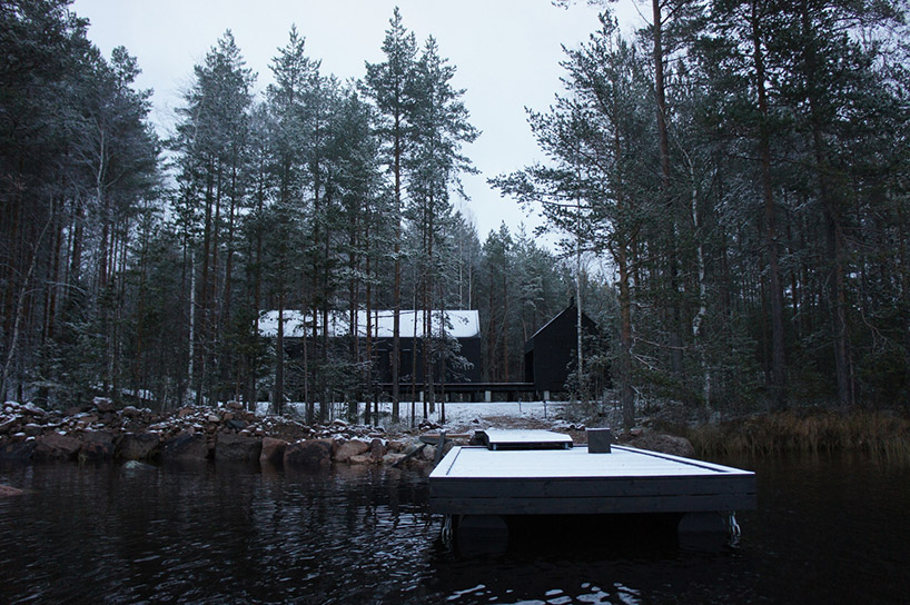 It is early spring, and the wind is mild, kicking up flurries of snow as dry and powdery as flour. On the southernmost tip of the island sits a small mökki of 500 square feet. Its body is made of dark Finnish Pine (Pinus Silvestris), and it has one south-facing window and one north-facing. A small cast iron chimney protrudes from the roof and is smoking puffs of black into the morning air. Inside, a set of wooden stairs lead up to an internal balcony, where a mattress and fluffy down duvet are set upon the ground. A large water tank stands in the far corner of the bottom floor facing the wood burner, and a red woolen rug stretches from beneath it towards the center of the room.